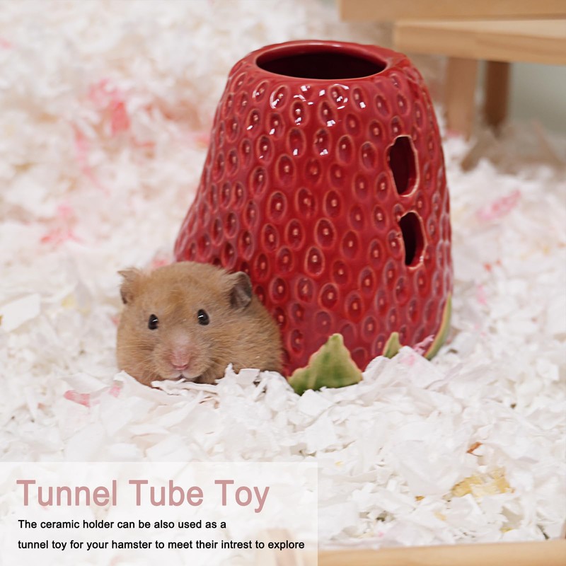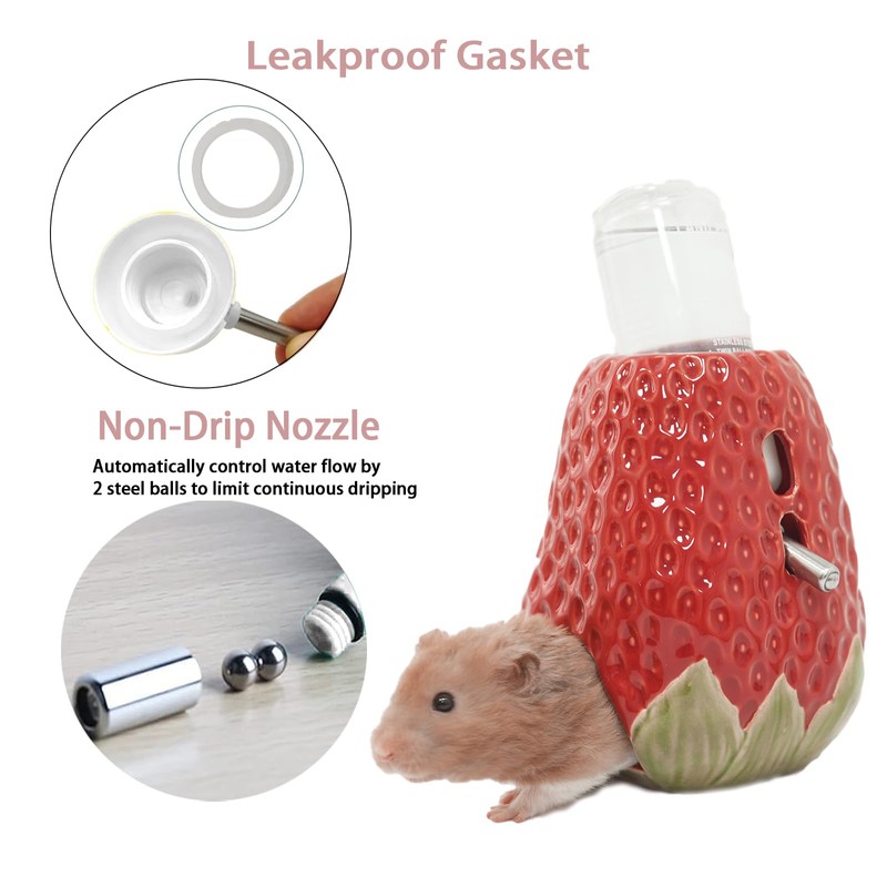 - Strawberry Shaped Design: The Deapeey hamster water bottle holder can also serve as a tunnel for hamsters, satisfying their instincts for digging, exploring, and building nests. The cute strawberry gerbil water bottle creates a soft and cute living environment for hamsters