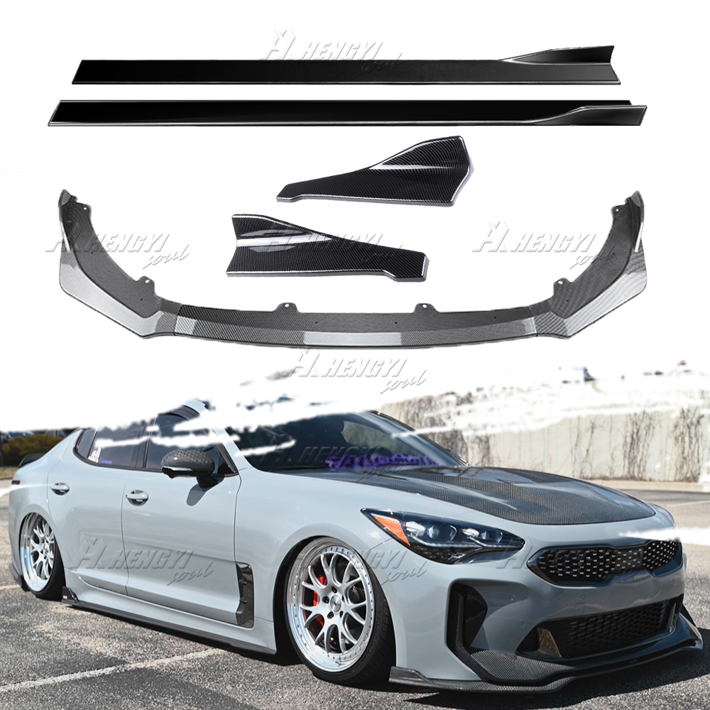 HAN For 2018-24 Kia Stinger Carbon Look Front Bumper Lip Side Skirt Rear Side Apron