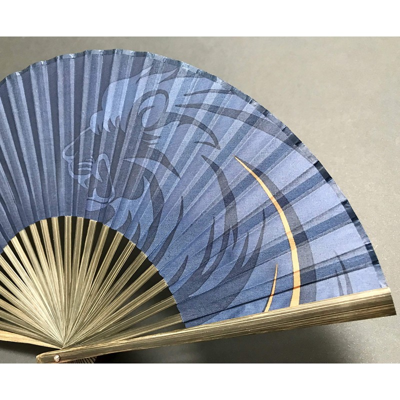 - Men's cotton fabric fan (with fan bag) with an impressive lion design drawn in shades of blue for a fashionable look. Large Size (8.7 inches (22 cm))