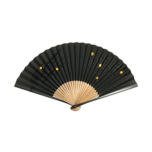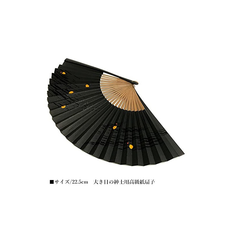 - Premium paper fan (with a sensu) with lacquered finish and black lacquered fan with a fluffy fluorescence design. Large men's fan (size 8.9 inches (22.5 cm))