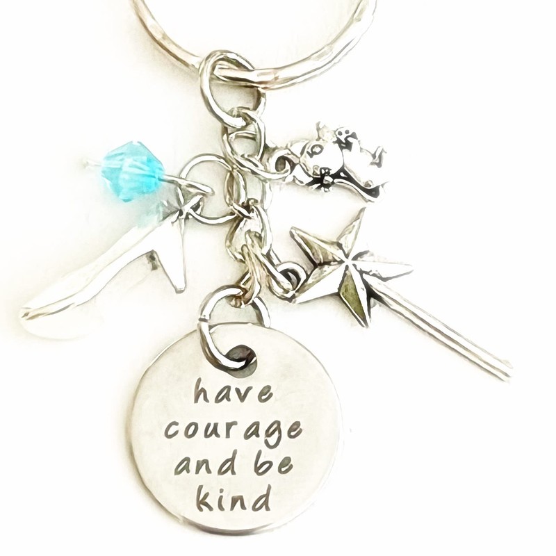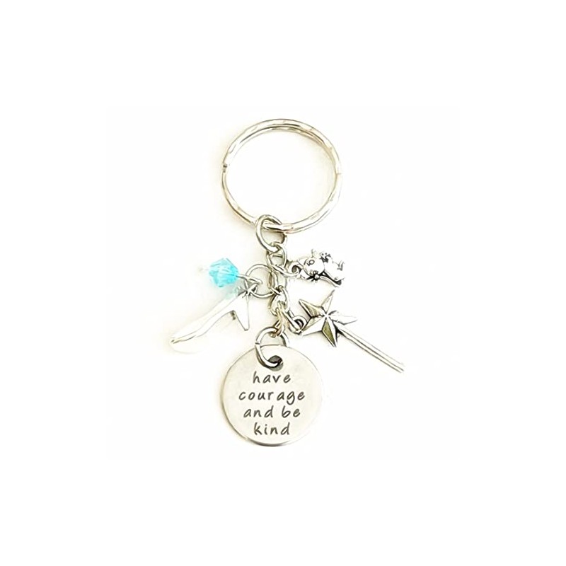 Hanalea Island Jewelry Co. Have Courage and Be Kind Cinderella Silver Charm Keychain Gift for a Kind Princess | Merchandise and Accessories for Women
