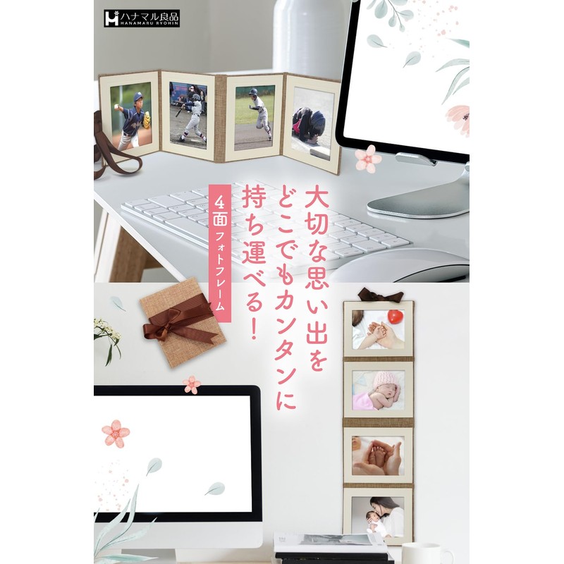 Hanamaru Good Product Photo Frame, Picture Frame, Wall Hanging, Stand, 4 Sides, Small/KG (Postcard Size) Present, Celebration (Brown/KG (Postcard) Size