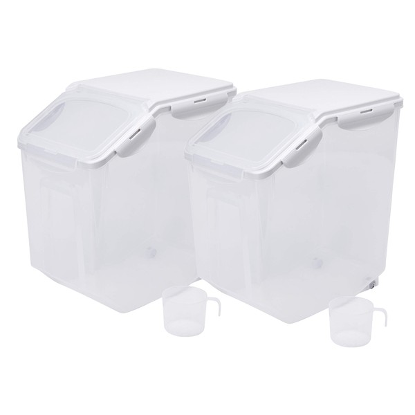 HANAMYA 15 Liter / 30 lbs Rice Storage Container with Measuring Cup, BPA free, For Rice | Grain | Pet Food | Flour, 2 counts, Clear