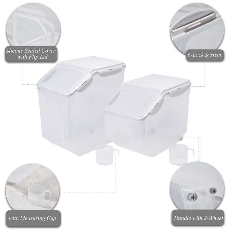 - Airtight Silicone Sealed Cover with Flip Lid and 6 Locks: Keep rice, flour, corn, beans or pet dry food fresh and healthy. It's moisture-proof, dust-proof, not leak-proof.