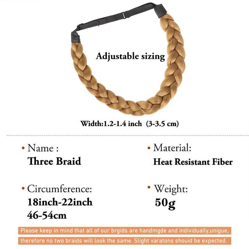 Hanaoops Braid Headband, 3 Strands Fishtail Plaited Braided Hairband, Adjustable Chunky Wide Braids Wig Band, Elastic Synthetic Twist Front Hairpiece Accessory for Women Girl
