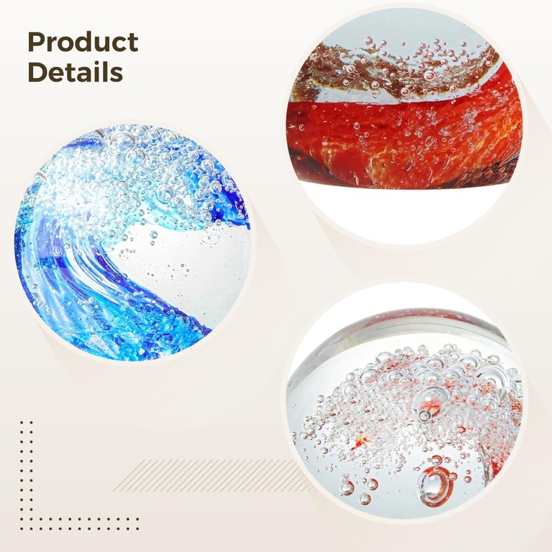 - Unique Design: Intricate spherical shape complemented by dynamic blue and green wave patterns inside; the fusion of colors creates a dreamy and minimalistic aesthetic