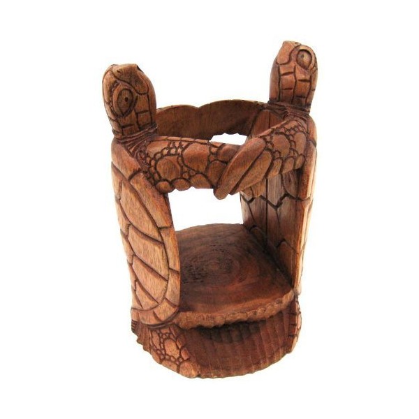 Hand Carved Double Turtle Wine Bottle Holder Stand by Private Label