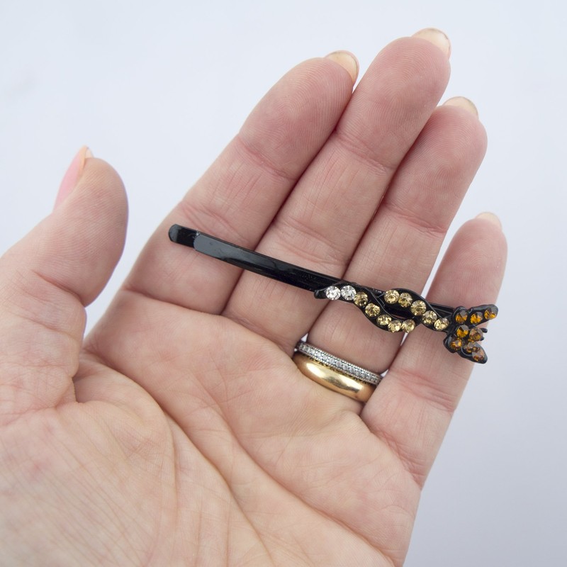 - A pack of 3 pairs of cute hair pins with a selection of colourful crystal designs.