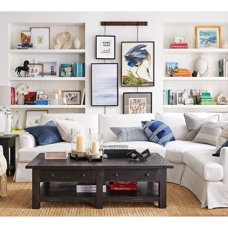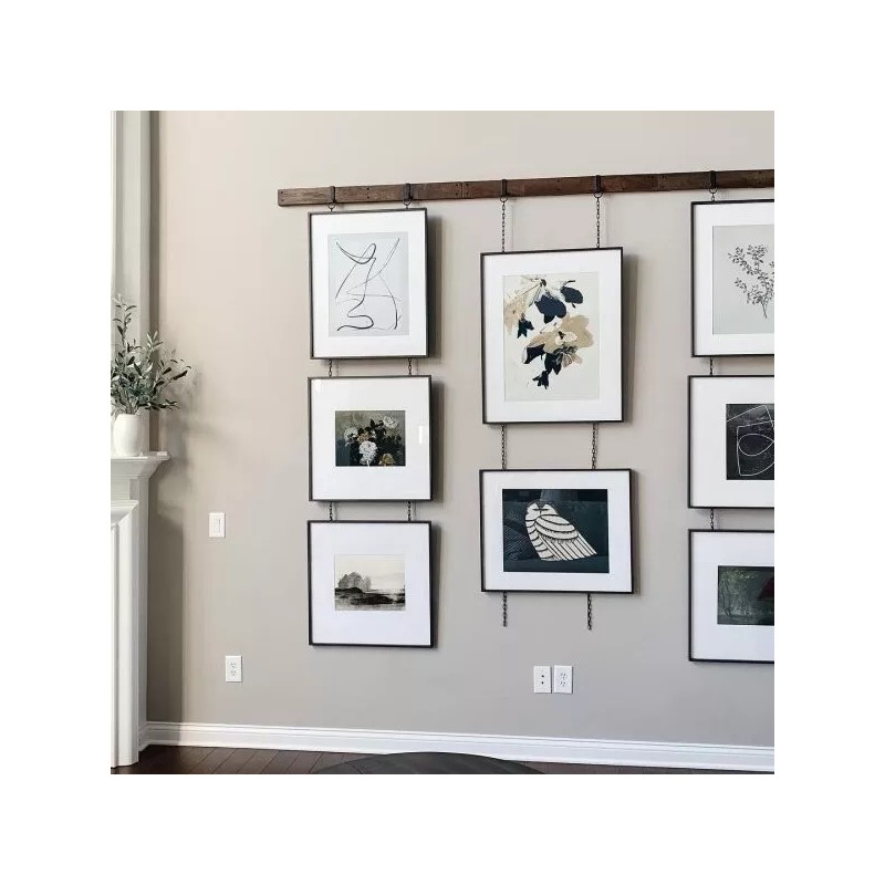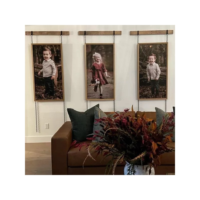 Hand crafted in the USA. Pecan 2 Chain Multi Photo Frame Rail Hanging Modern Art Picture Display