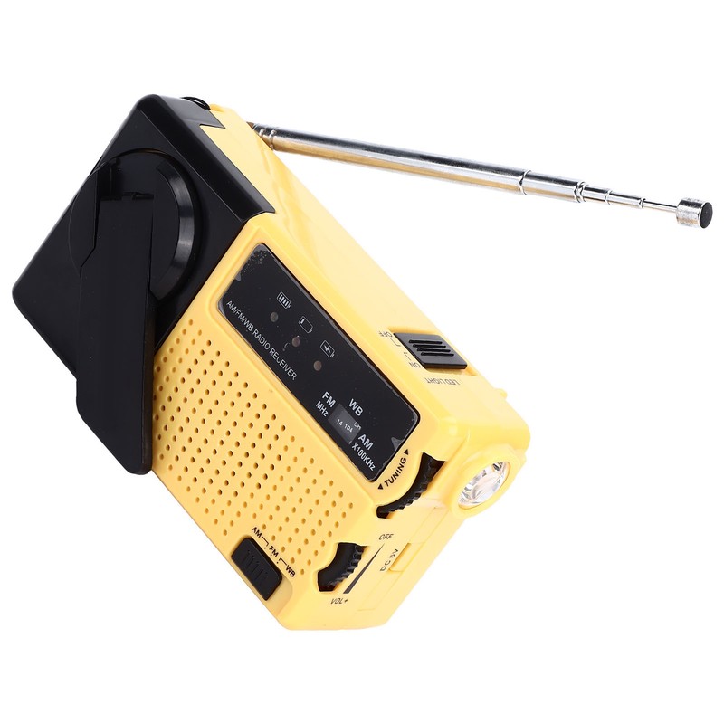 Hand Crank Flashlight Radio Portable Mini FM AM Weather Radio with LED Flashlight Yellow