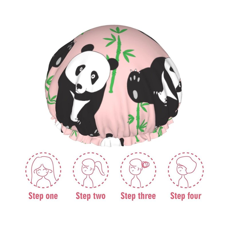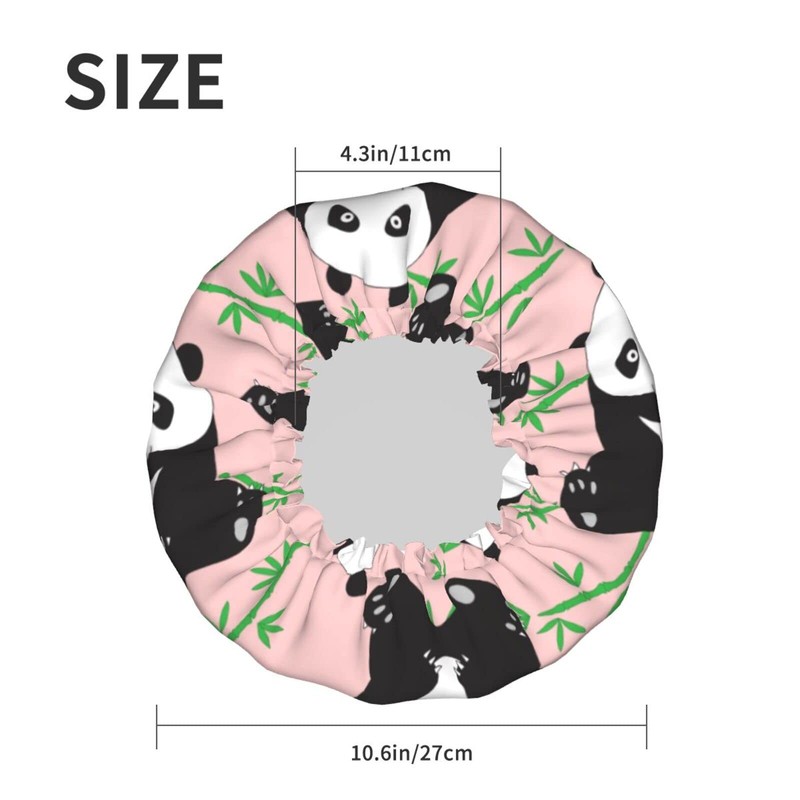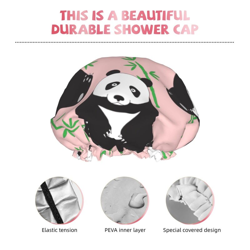 Hand-drawn cute pandas Shower Cap for Women,Double Waterproof Layers Bathing Shower Hat Large Designed for all Hair