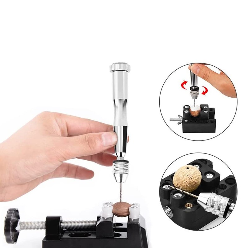 The hand drill is useful for precision drilling, tool making, model drilling, engraving as a profession or hobbies. It is precise, accurate and efficient, can be used for drilling wood, plastic, rubber and many other soft materials, cannot drill metal or stones. With a chuck with large gripping range from 0.3mm to 3.6mm, many different drill sizes can be used and used for different purposes.