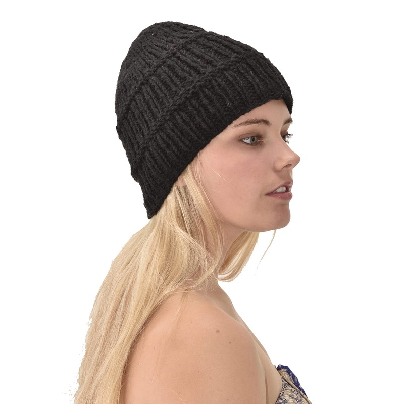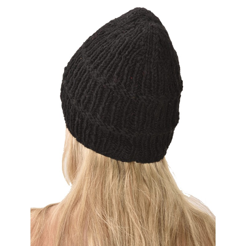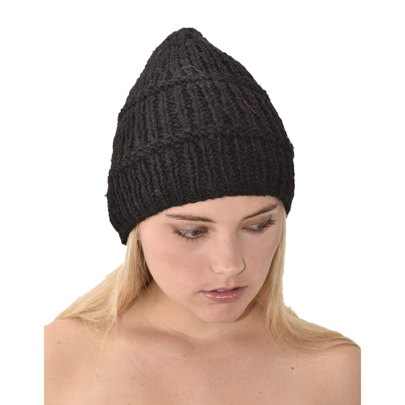 Hand Knitted 100% Merino Wool Snowboard Ski Himalayan Slouchy Beanie Polar Fleece Lined Woolen Stocking Cap Womens Winter Hat-Grey- Black