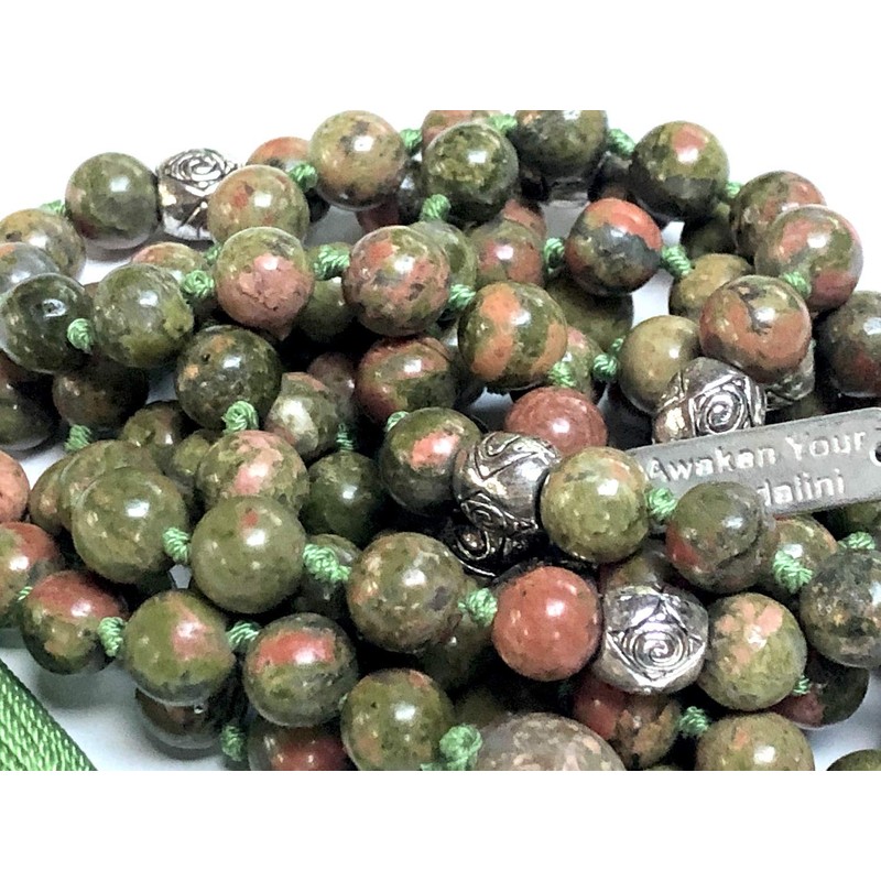 - Embrace Balance and Healing with our Hand Knotted Unakite Mala Necklace. This stunning piece is meticulously crafted with 108 8mm unakite beads and elegant zinc alloy spacers, designed to enhance your spiritual practices and bring a touch of natural beauty to your everyday wear. Hand Knotted in USA.