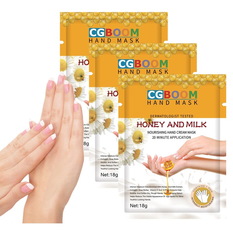 Hand Masks, 3 Pairs Moisturising Gloves, Exfoliating Hand Masks, Nourishing, Soft Hand Care, for Dry and Cracked Hands (Honey Milk)