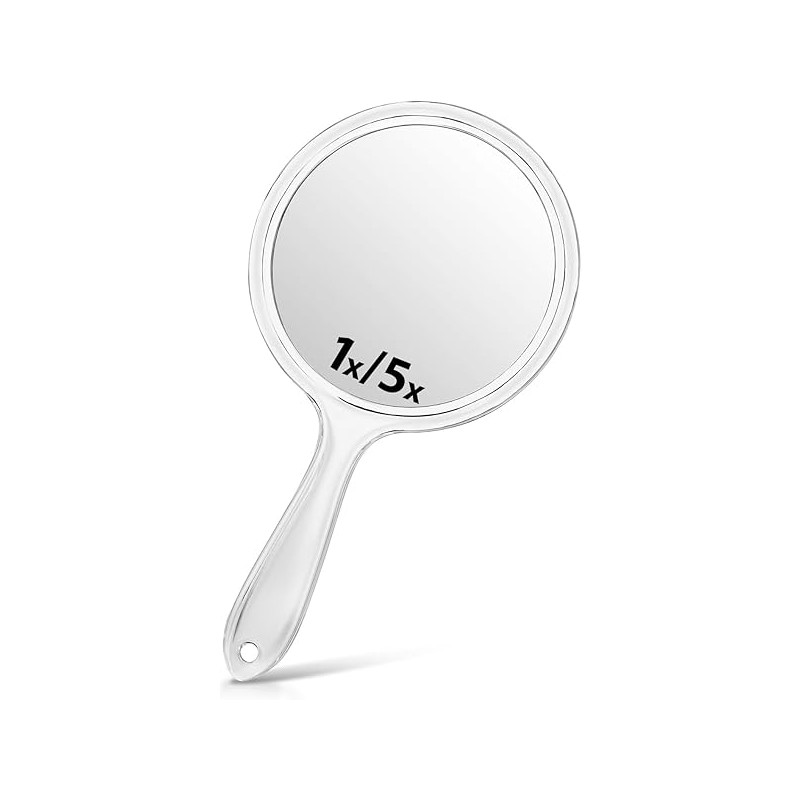 Hand Mirror, Double-Sided 1X/5X Magnifying Mirror with Handle, Acrylic, 8.3" L x 4.5" W, Clear, Pack of 1