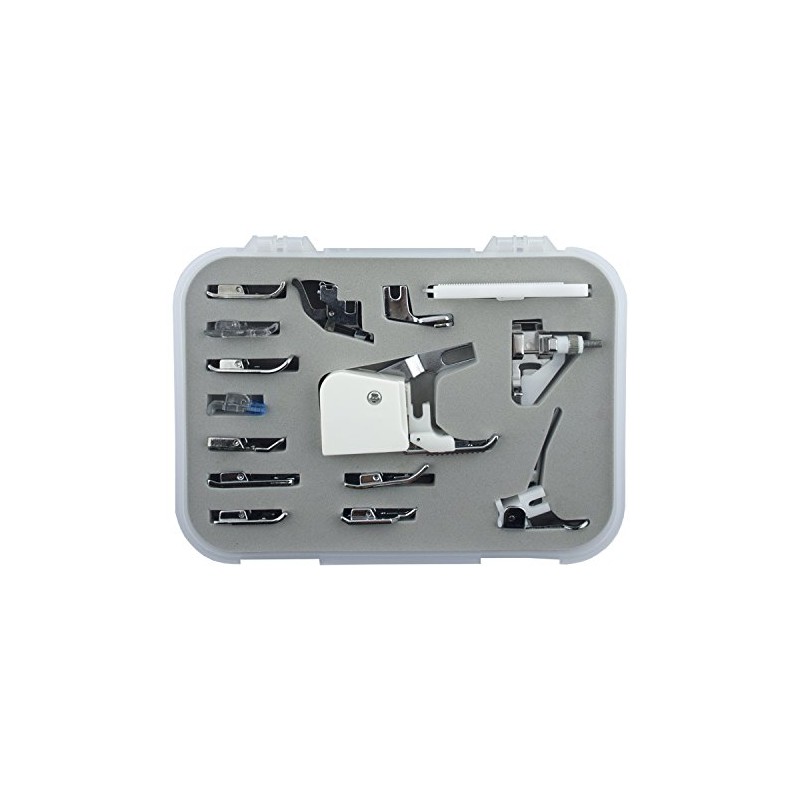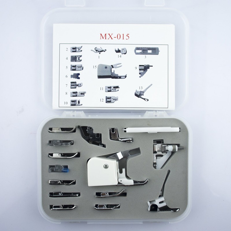- A 15 piece all-purpose sewing machine foot kit.
