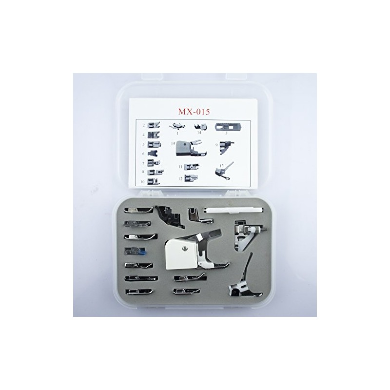HAND ® MX-015 15 Pieces Domestic Sewing Machine Foot Set Essential Pack including Zigzag, Buttonhole, Satin Stitch, Quilting, Hemmer, Gethering, Darning, Cording and Walking Foot etc