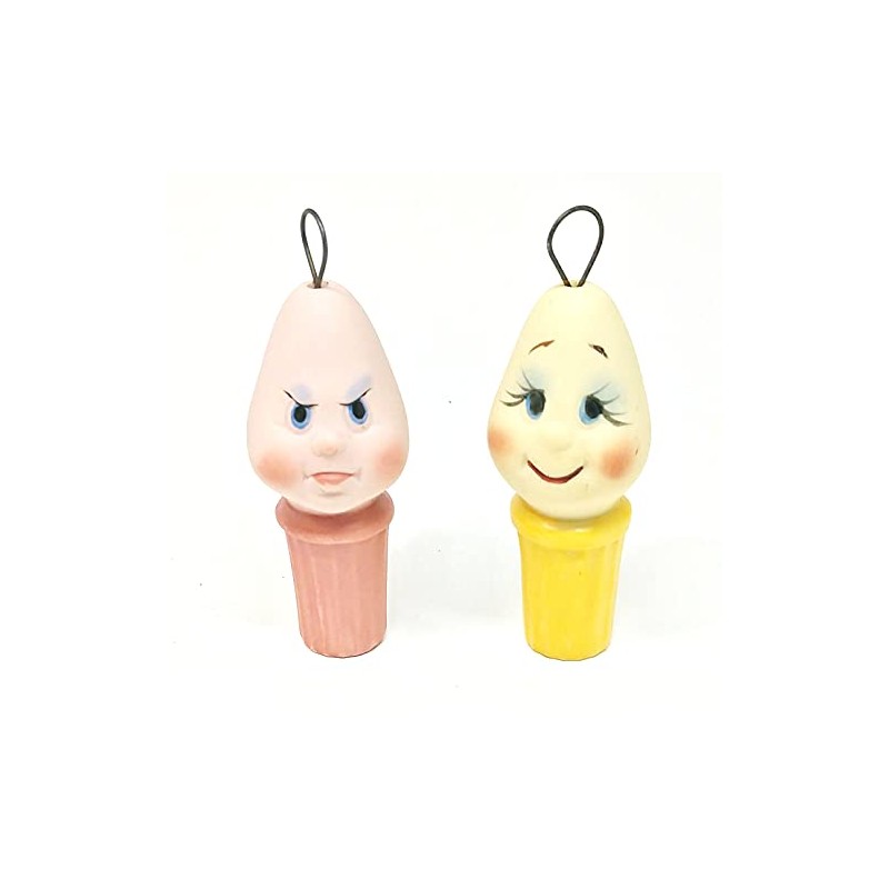 Hand Painted Ceramic Silly Face Light Bulb Ornament 2.5 Inches - Set/2 (Yellow and Pink)