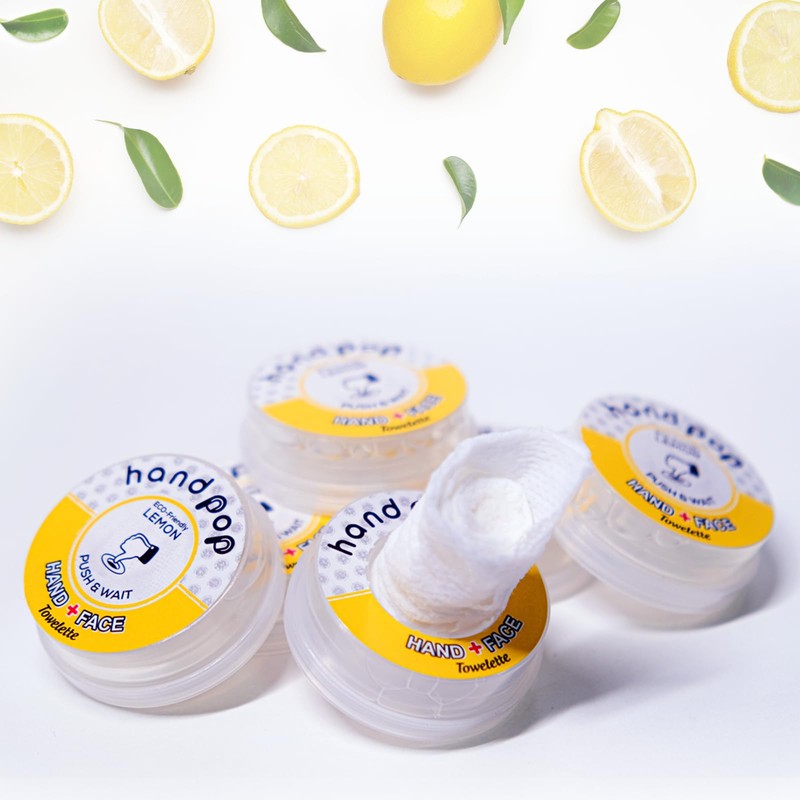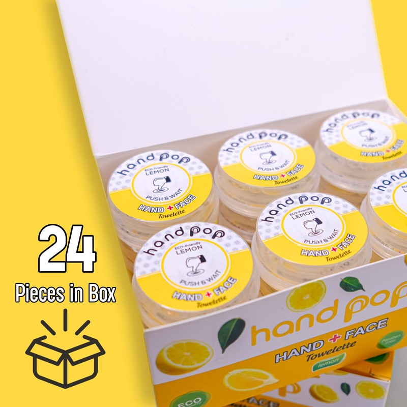 Hand Pop Lemon Scented Wipes - 24 Pack of Travel Size Wet Towelettes, Alcohol-Free, Wipes for Skin Hydration, Convenient, Eco-Friendly, Refreshing, Fits in Gym Bag, Purse, Pocket, or Luggage