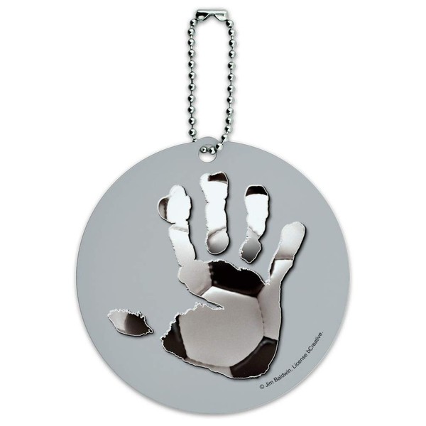 Hand Print Soccer Ball Get a Grip Round Luggage ID Tag Card Suitcase Carry-On