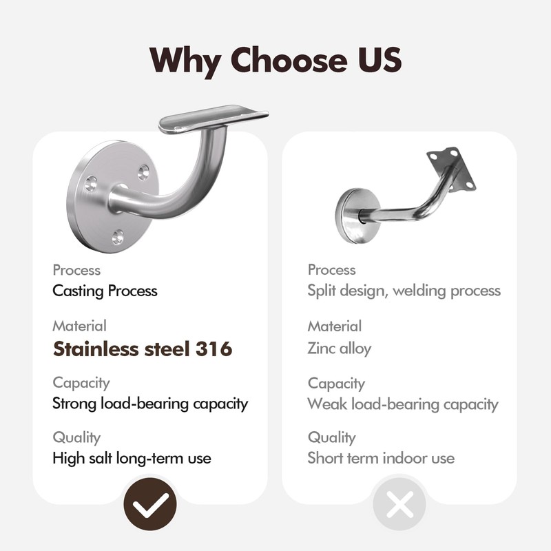 - 【Perfect Fit for Tube Handrails】Precisely designed to securely hold handrails, this bracket delivers a perfect grip and seamless installation for round railings. Its premium construction ensures both a rock-solid hold and a sleek look.