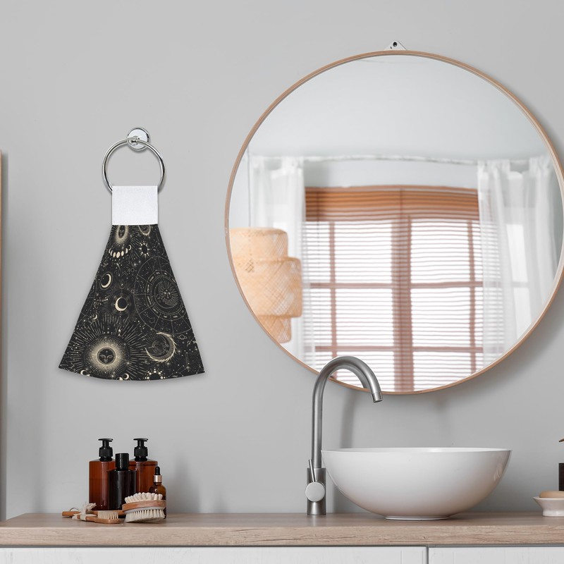 Hand Towels Moon Phases Hand Tie Towels Set of 2 PCS Dish Towels with Loops Tea Bar Dish Cloths Towel for Bathroom Home 12x17 Inch