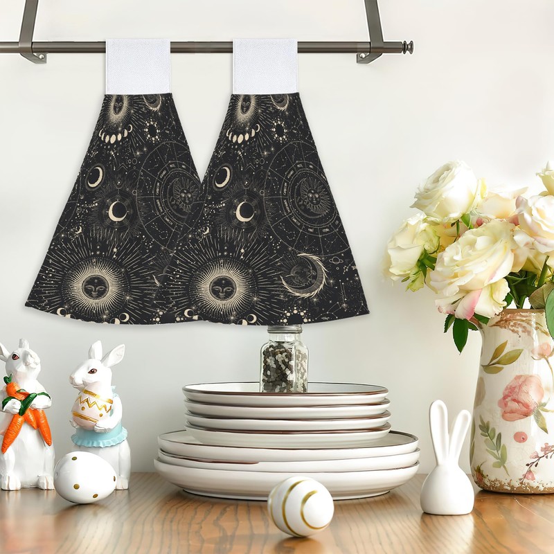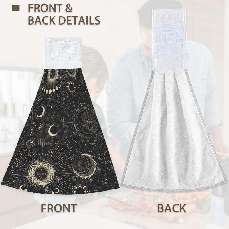 Hand Towels Moon Phases Hand Tie Towels Set of 2 PCS Dish Towels with Loops T...