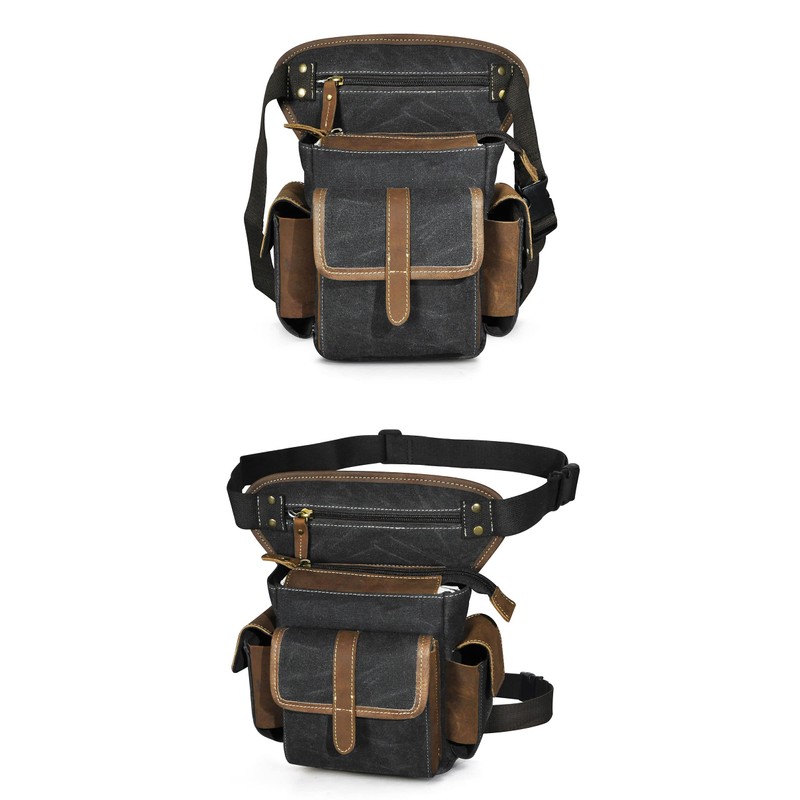 Handadsume Canvas + Genuine Leather Motorcycle Travel Fanny Waist Pack Drop Thigh Leg Bag Pouch for Men Women FB913-5 FB3106 FB3111 (Black)
