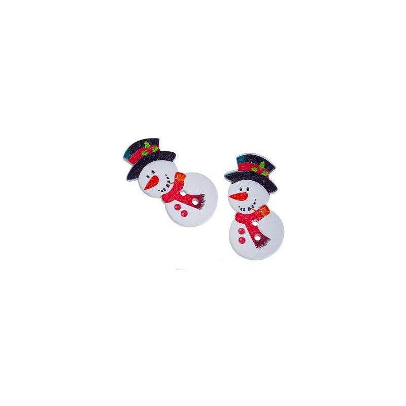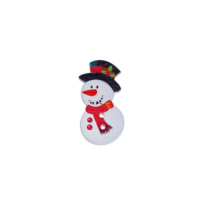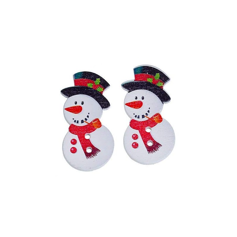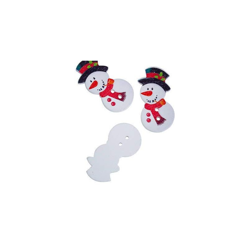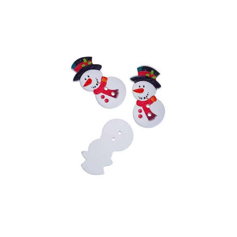 - Pack of 30 beautiful wooden buttons in the shape of a snowman.
