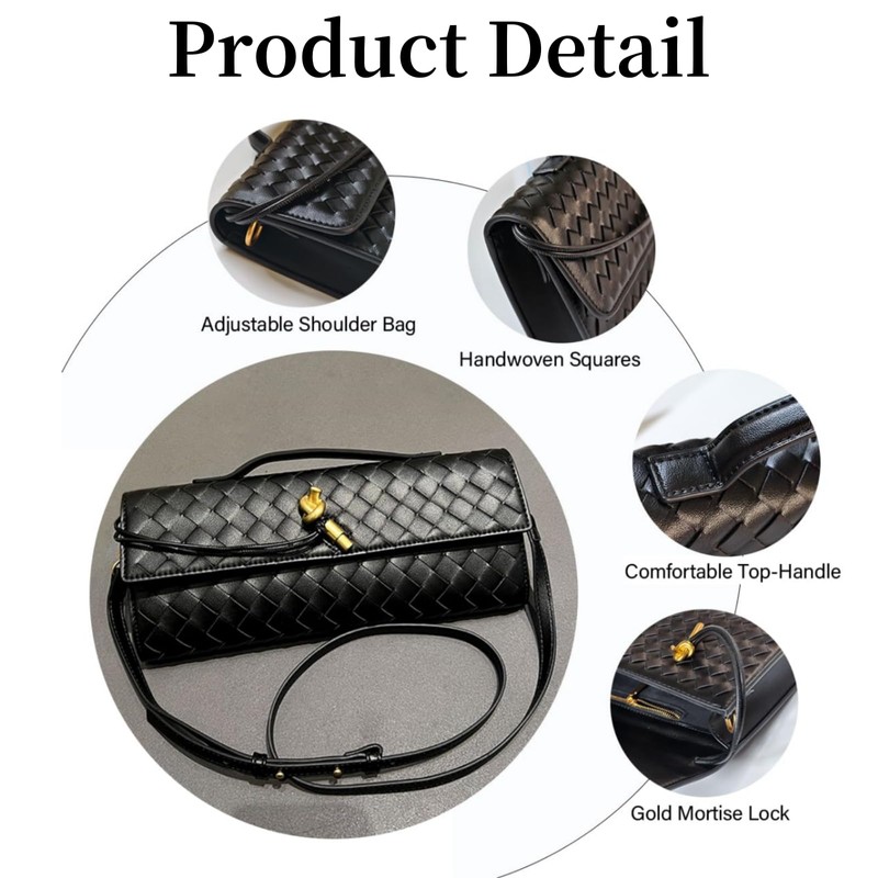 - PREMIUM DESIGN: Constructed from durable woven leather, Handcrafted with intricate woven leather pattern throughout, featuring elegant gold-tone hardware and plus the gold mortise lock design makes the purse look more exquisite and elegant.