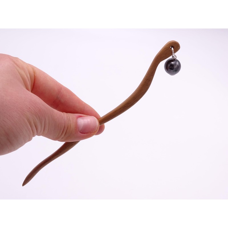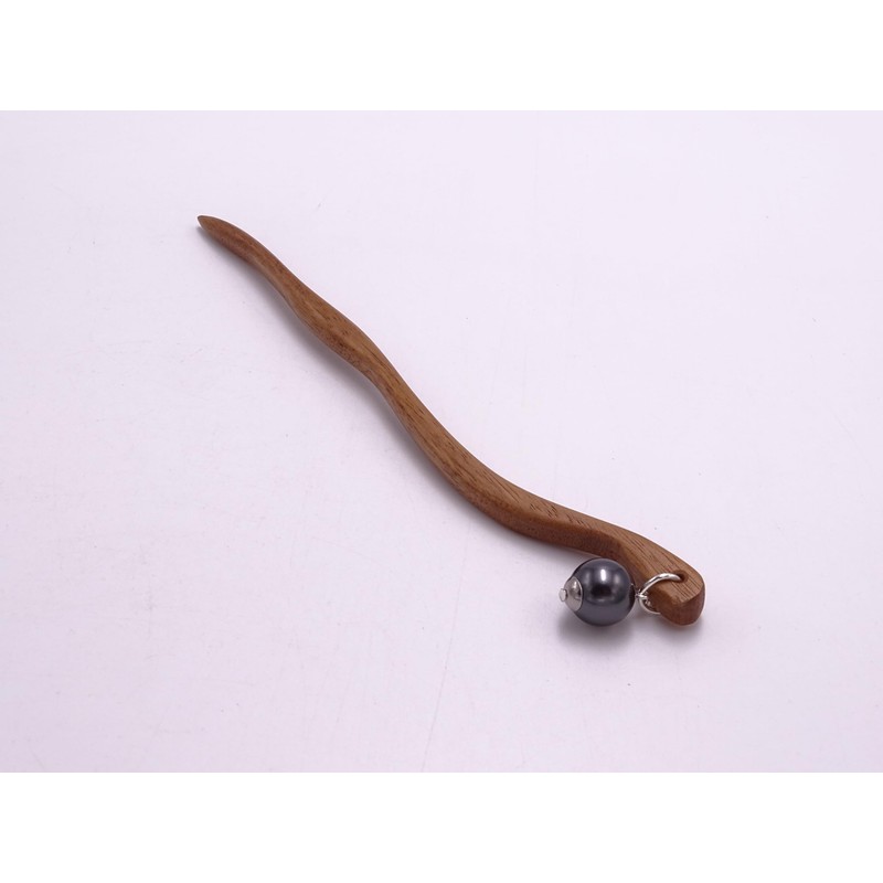 Handcarved Walnut Wood Hair Stick with Hematite Bead