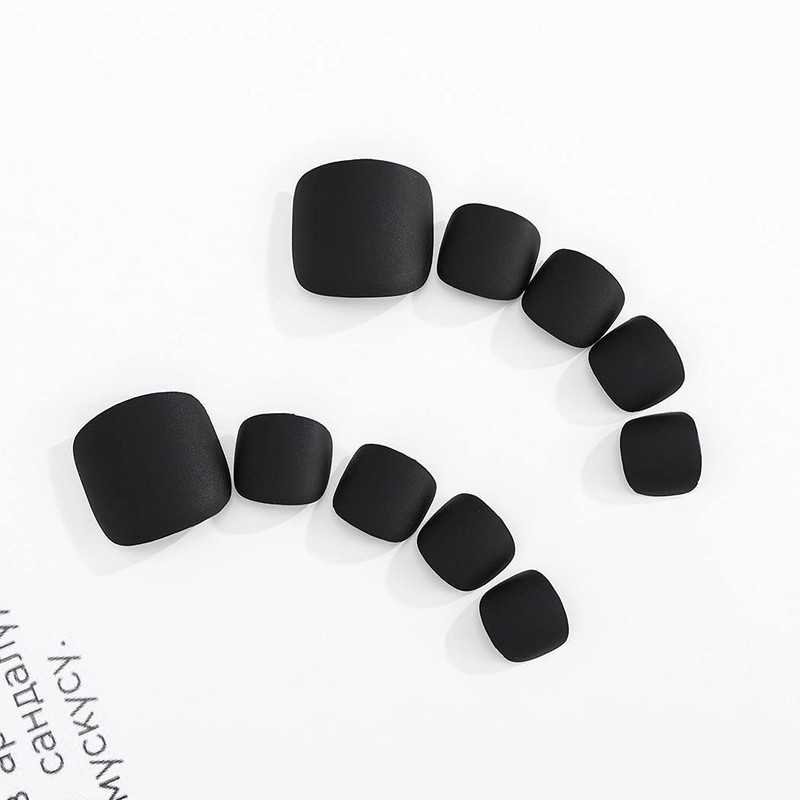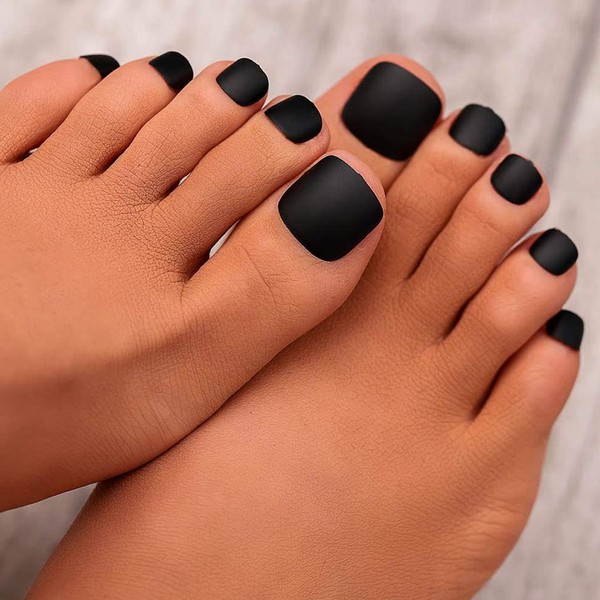 Handcess Square Matte False Toenails Short Black Artificial Toenail Full Cover Artificial Stick on Foot Nail Tips for Women and Girls (Pack of 24)