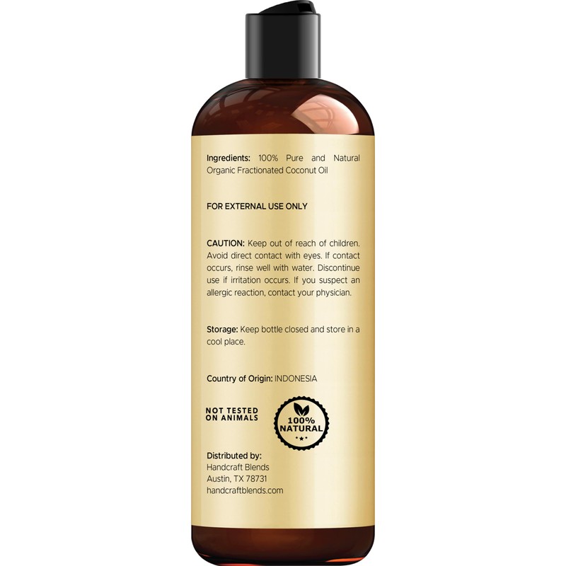Handcraft Blends Organic Fractionated Coconut Oil - 236 ml - 100% Pure and Natural - Premium Grade Oil for Skin and Hair - Carrier Oil - Hair and Body Oil - Massage Oil