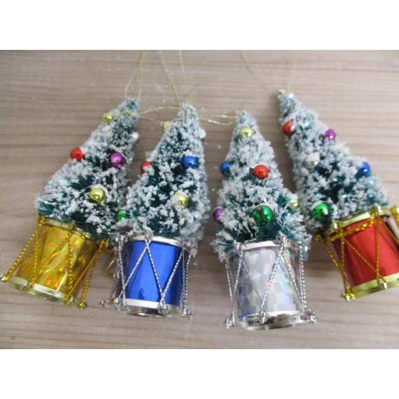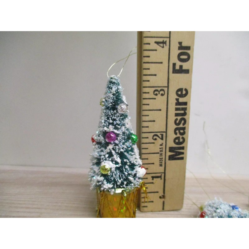 Handcrafted 4 Bottle Brush Sisal Tree Snow Tipped w/ Drum Small Christmas Ornaments (A)