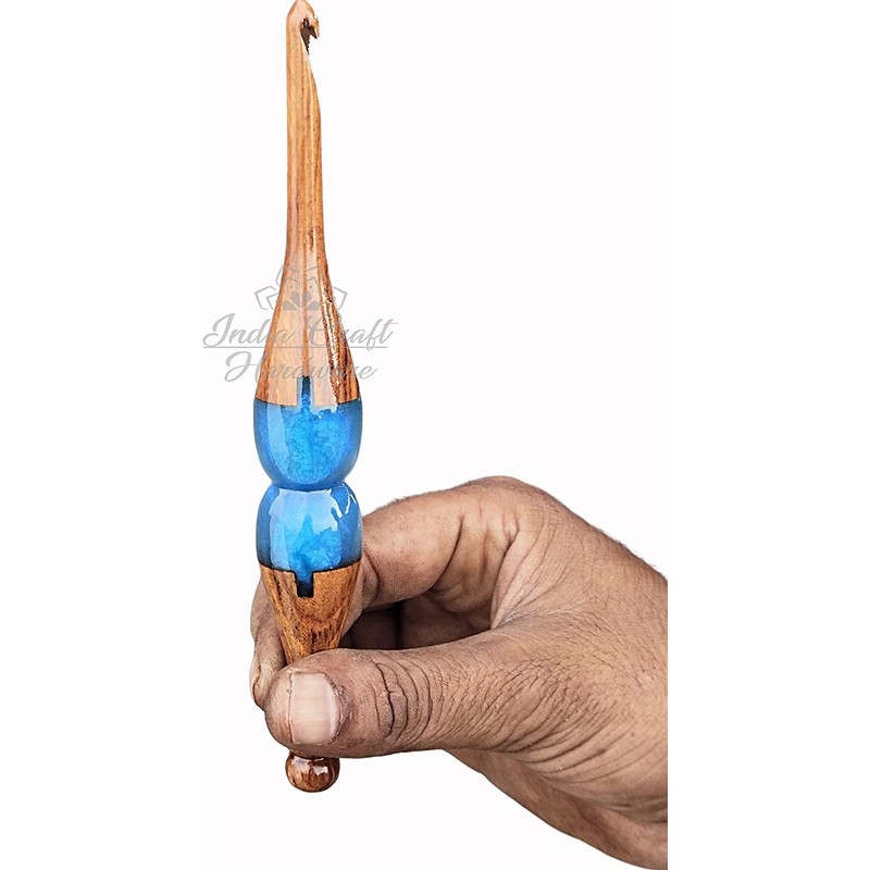 Handcrafted (Blue) Resin epoxy & Wood Mix Crochet Hooks Ergonomic Soft Handle Needles Knit Weave Craft Yarn Different Size, Crochet Hooks, (5mm)