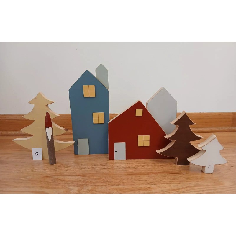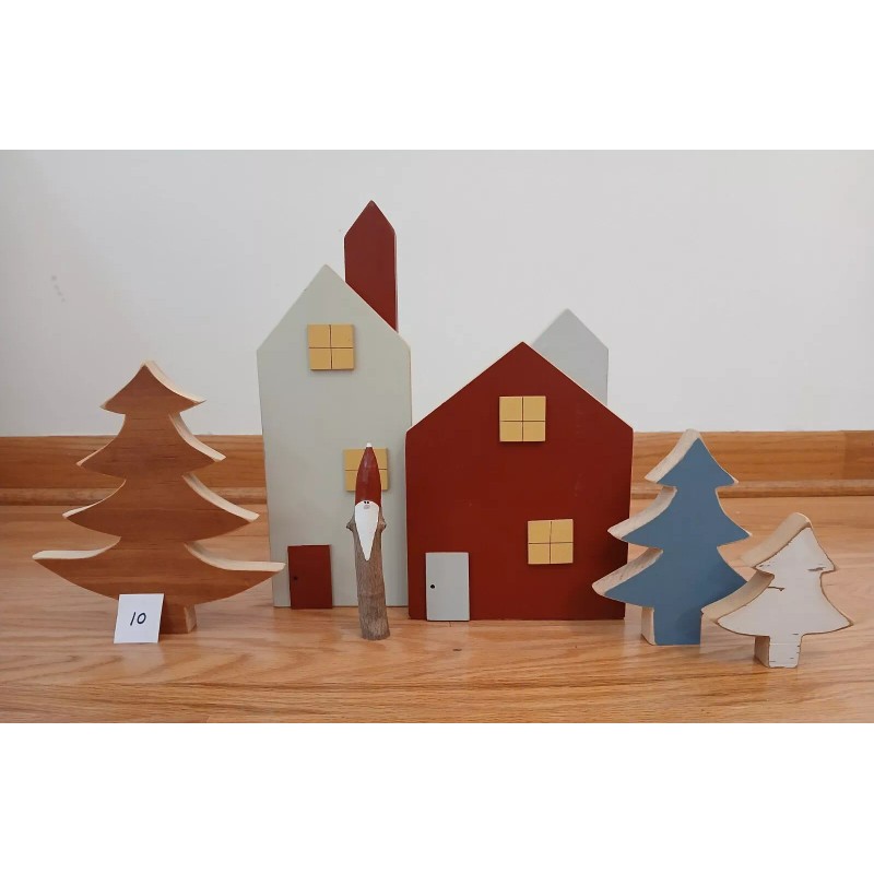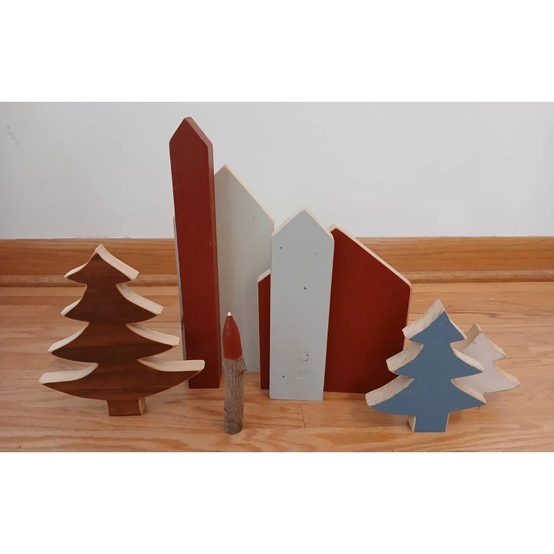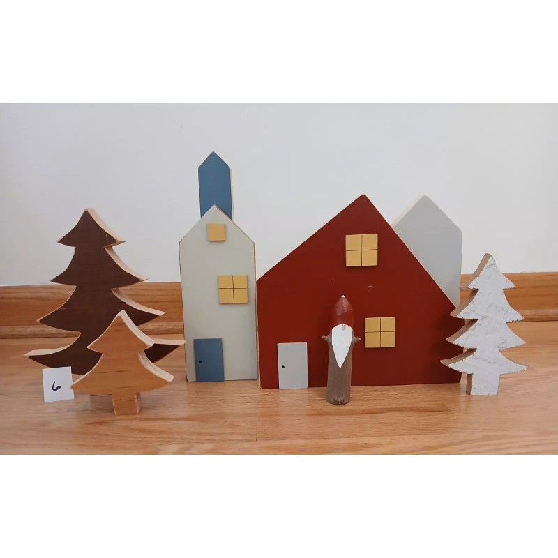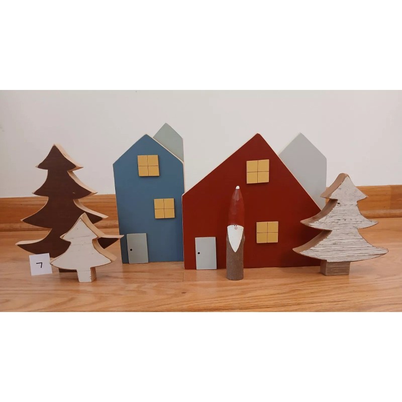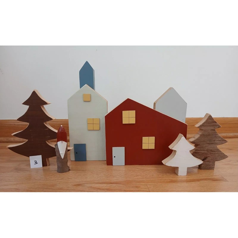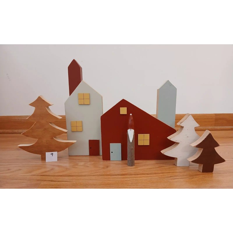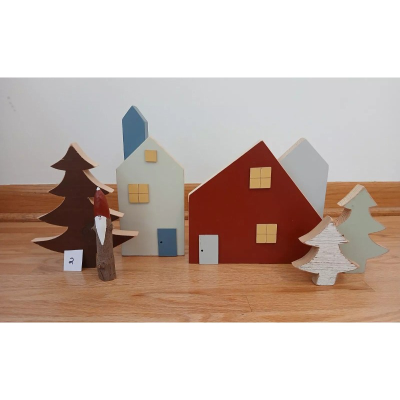 Handcrafted Christmas Village Scene Handcrafted Wooden Nordic Scandinavian Folk Gnome Trees