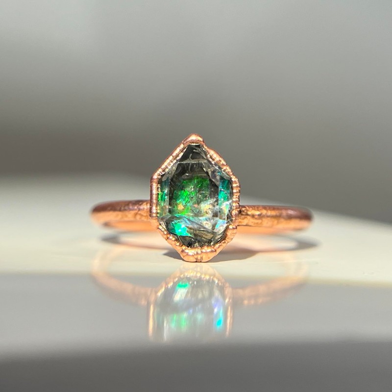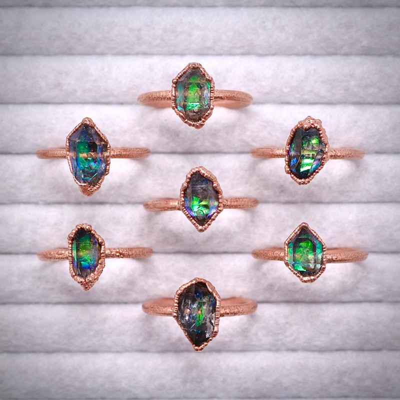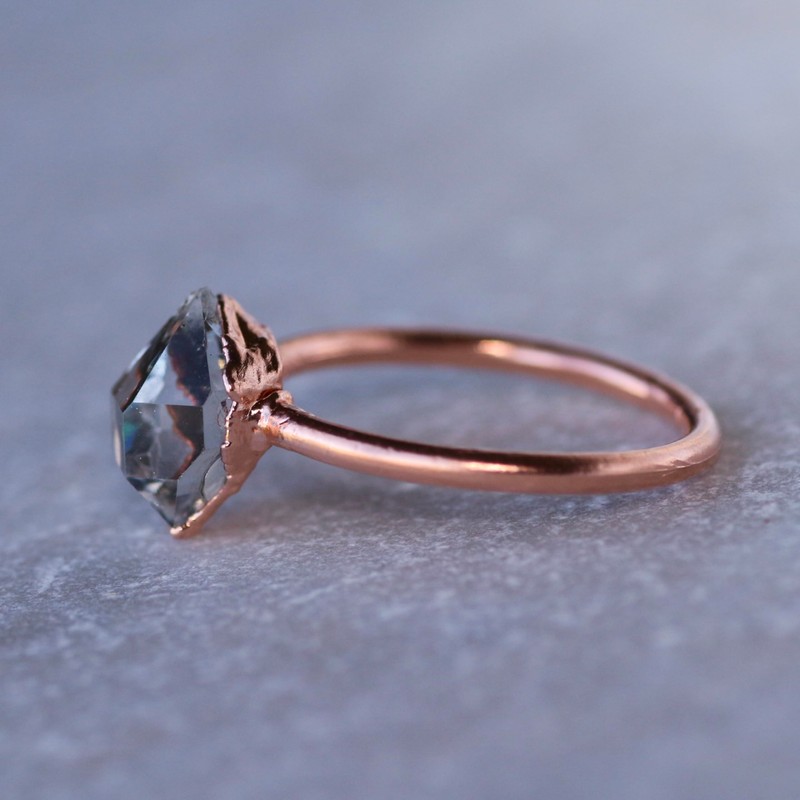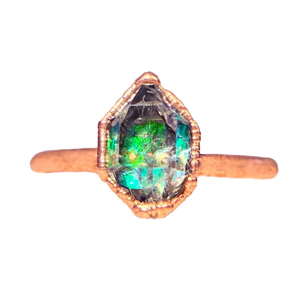 Handcrafted Copper Electroformed Aura Herkimer Diamond Healing Ring (7)