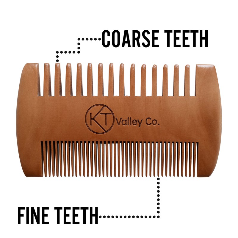 Handcrafted Pear Wood Beard Comb for Men - Fine and Coarse Tooth Grooming Tool for Detangling, Shaping and Styling Facial Hair - Natural Material for Nourishing and Conditioning - Ergonomic Design for Comfortable Use by KT Valley Co.