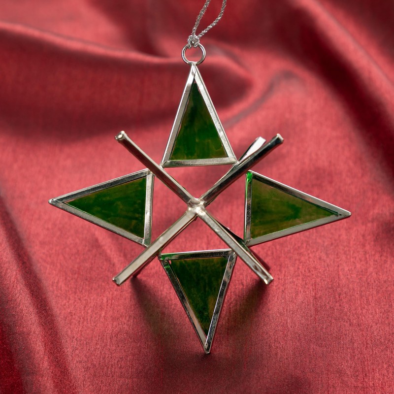 Handcrafted Stained Glass Moravian Star Ornament 3D Fair Trade Christmas Tree Decoration Multidimensional Home Decor Unique Design (Green, Medium)