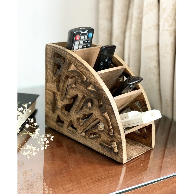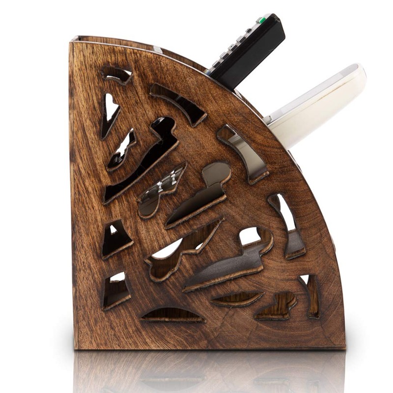 - HANDCRAFTED - Unlike other machine made remote holders, each piece of this remote holder has been individually crafted by hand. Smartly designed not only for super efficient storage, but also to elegantly decorate your living room. Why not add an eye catching handmade conversation piece while organizing your media space at the same time
