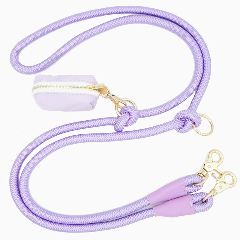 HandFree Rope Cross Body Dog Leash with Poop Bag Holder 7ft, Soft Nylon Rope Hands Free Leash, Waist Dog Walking Accessories (Lavender, 7ft x 10mm)