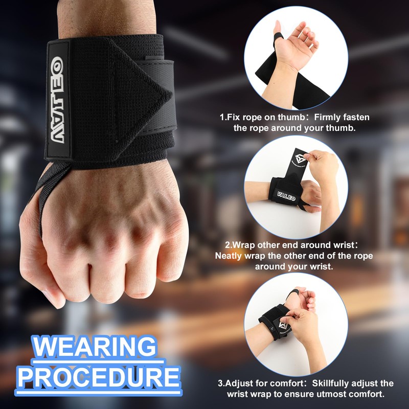 - Länge für sicheren Halt – Jede Bandage misst 57 cm in der Länge und 8 cm in der Breite, passend für die meisten Handgelenkgrößen, um den Handgelenken während intensiver Übungen wie Bankdrücken, Schulterdrücken und Dips stabilen Halt zu bieten.
