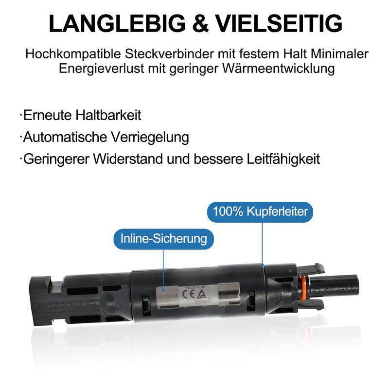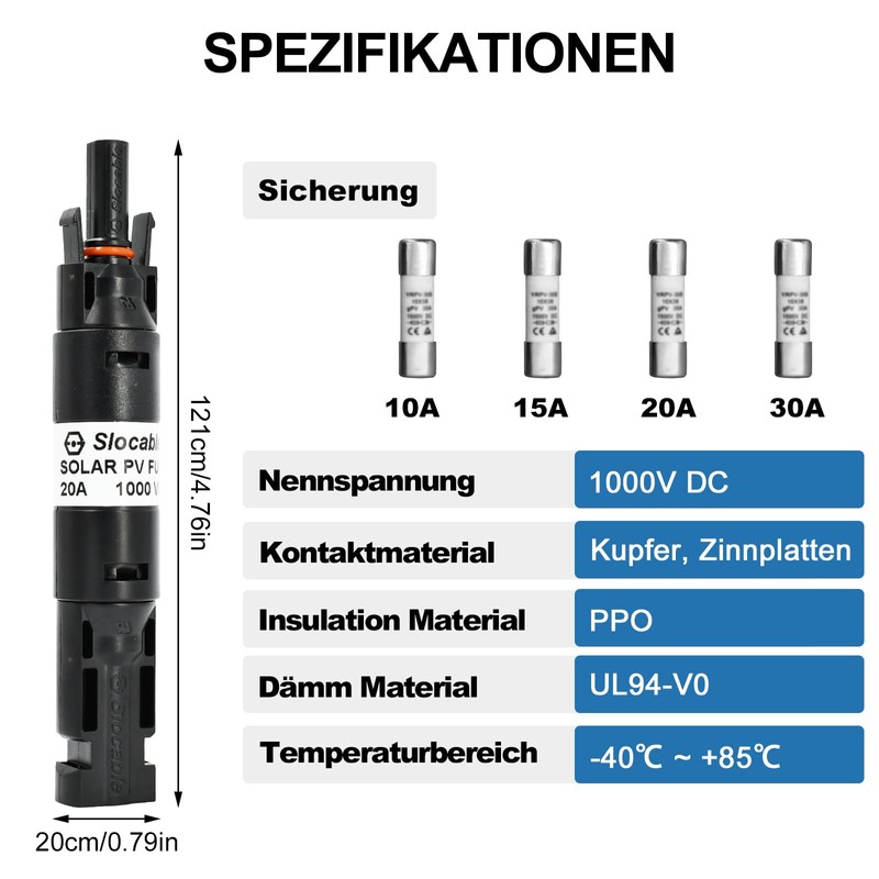 HandGold Solar PV Fuse Holder with Inline Fuse, 1000 V IP68 Waterproof Fuse Plug, Solar Fuse Connector for Solar System/Balcony Power Station (20 A)