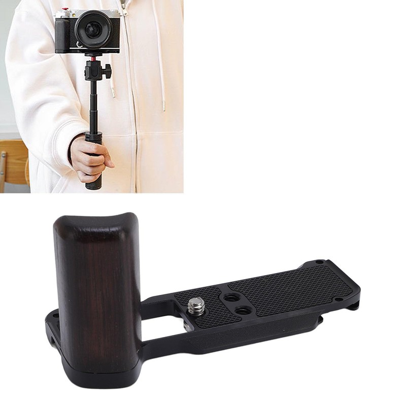 Handgrip L Shape Grip for XM5 Camera, Built-in Quick Release Plate for Arca, Wooden Side Handle, 1/4-20 Thread Hole, Cold Shoe, with Shutter Buttons (Black)