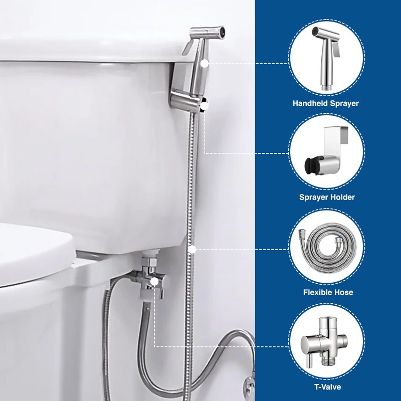 This handheld bidet sprayer for toilet is the ultimate solution for enhancing your personal hygiene routine. Engineered for convenience and versatility, this ergonomic bidet sprayer makes cleaning effortless while offering multiple uses around the home. Whether you're looking for an eco friendly alternative to toilet paper spray or a practical tool for everyday cleaning tasks, this handheld bidet spray is a must have addition to any household. This 7/8 inch bidet sprayer is designed to provide superior hygiene with its easy to use one hand operation. It offers a more hygienic and refreshing clean compared to traditional toilet seat bidet sprayer, giving you a healthier and more comfortable experience. The adjustable water pressure lets you customize the spray to your preference, from a gentle rinse to a stronger stream. Ideal for those with limited mobility or those recovering from surgery, this versatile bidet sprayer serves multiple purposes. It functions as a cloth diaper sprayer, pet shower, and flower sprayer, making it an incredibly useful tool in any home. Its flexibility allows it to meet a wide range of needs. This handheld bidet spray is also incredibly easy to install, with clear instructions that allow for a quick setup without needing a plumber. It fits most toilet seats, making it a convenient addition to your bathroom. Made from durable 304 stainless steel and brass, it ensures long lasting use, with a rust proof and anti corrosion finish that’s easy to maintain. This handheld bidet sprayer combines exceptional hygiene, convenience, and versatility, making it the perfect upgrade for your bathroom. Order yours today and experience a new level of cleanliness and comfort.