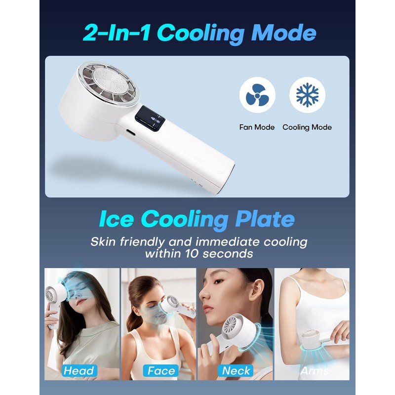 - 【2-in-1 Multi-functional Fan】 Features a built-in semiconductor cooling plate to reduce air temperature, providing a fresh, cool breeze. Its round radiator design quickly lowers air temperature and cools active areas like the face, wrists, or neck. With a single button, switch between fan mode and cooling plate mode for rapid cooling within 3-8 seconds, offering maximum comfort.