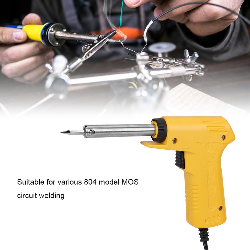1、The heating speed is fast, and the soldering can be done after 1 minute of energizing. 2、High efficiency and energy saving, power consumption is 50% lower than ordinary electric iron. 3、The handle is equipped with thte unique structure and material, the temperature of the handle will rise slowly. 4、Can be used for various MOS circuit welding (only 804 models are available). 5、Lead-free and long-life welding tip, suitable for lead-free welding process. 6、The power conversion and switch are related to button keys, which are more convenient for operation. 7、Small size and light weight will decrease the burden of your hand, easy to carry and use.