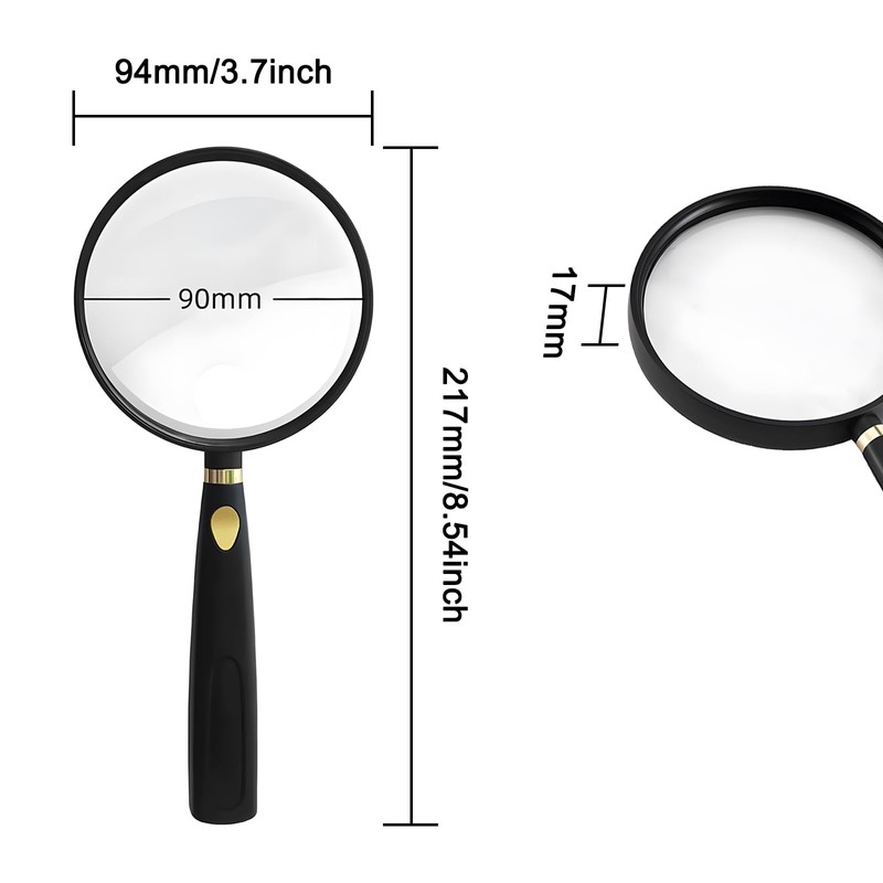 - 90 mm diameter: 90 mm magnifying glass, the super large lens offers a larger field of view, shows more content and reduces eye fatigue, which offers you a better viewing experience.