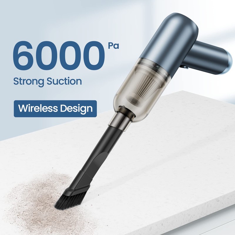 Handheld Mini Car Vacuum Cleaner with 6000 Pa Suction, Small Cordless Rechargeable Computer Vacuum Keyboard Hoover, Hand Held Dust Busters, Portable Desktop Sweeper, USB, Lightweight for Vehicle